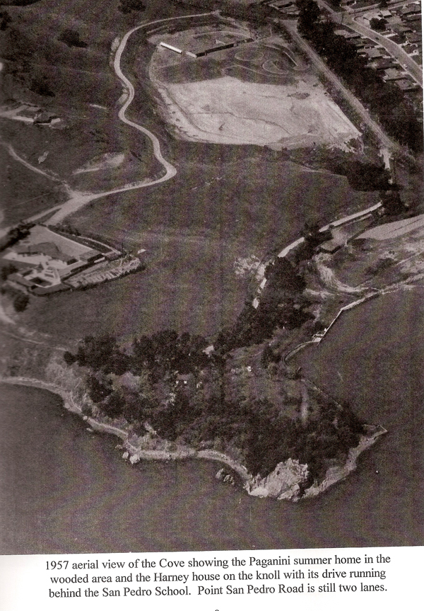 Mid-point on left edge of photo is Chuck Harney home, where four 2500’ homes stand today. Top right is Loch Lomond or Villa Real, which used to be owned by the Paganinis. Most of this photo is the Cove today. On Paganini Point (bottom right) is the 10,008’ Paganini house.