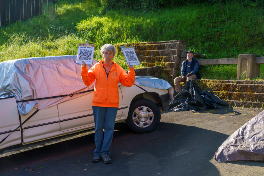 Scotch and French broom are invasive species that crowd out less flammable native plants, harm wildlife habitats, and change soil chemistry. When embers land on the broom’s oily leaves, they ignite quickly and burn intensely. The thick, impenetrable stands provide for a continuous fuel ladder from the ground up into tree canopies, allowing fires to spread vertically and horizontally and increasing the intensity and reach of wildfires.