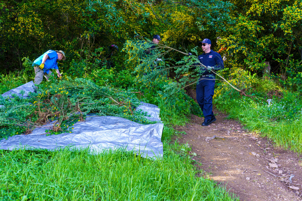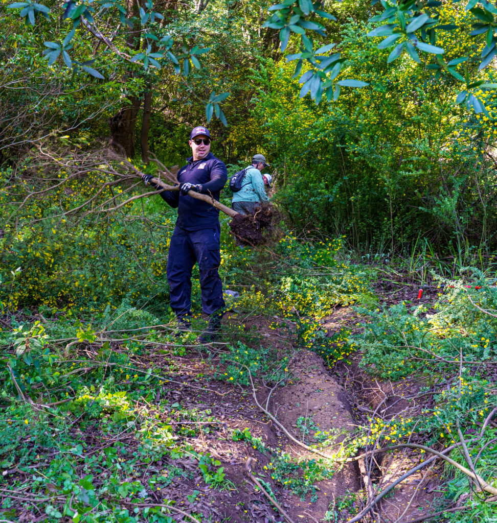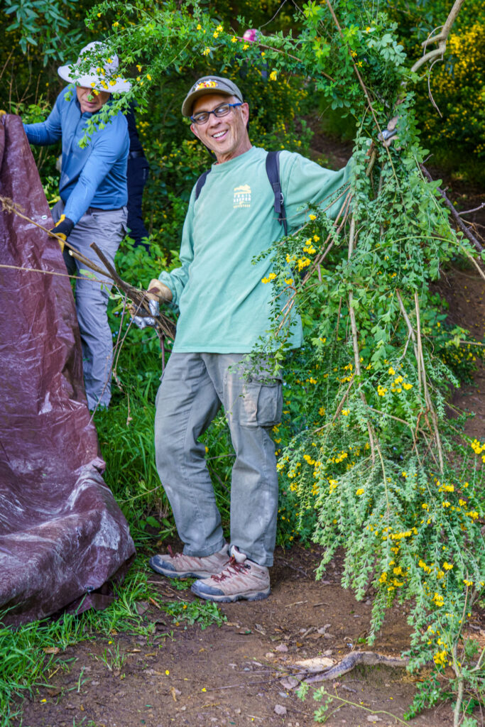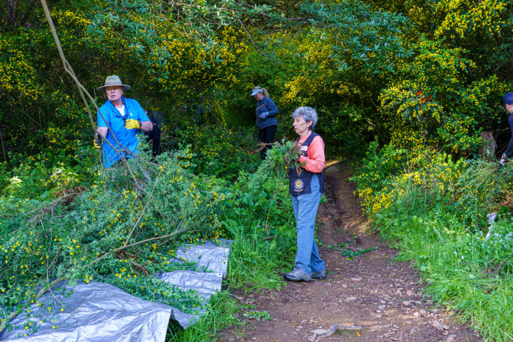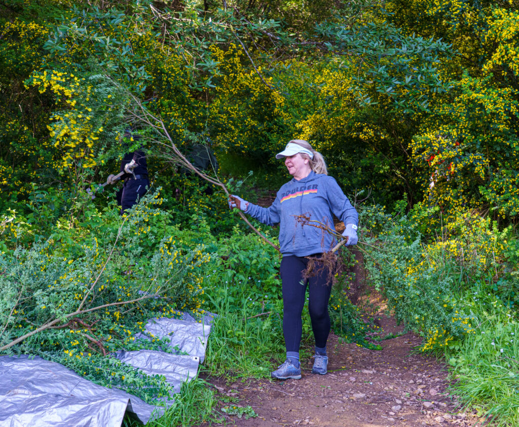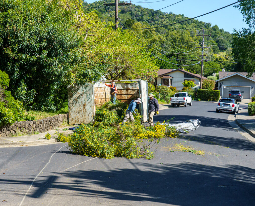 A big THANK YOU to everyone who participated in removing flammable vegetation for SPRC’s Earth Day Broom Pull in the Glenwood neighborhood! We especially appreciated the amazing support from the San Rafael Fire Department, Friends of China Camp, and Glenwood Neighbors. As you can see in the photos below, invasive broom was crowding the social trail and growing densely along the fence lines of the adjacent homes on Beechwood and Heartwood Drives.