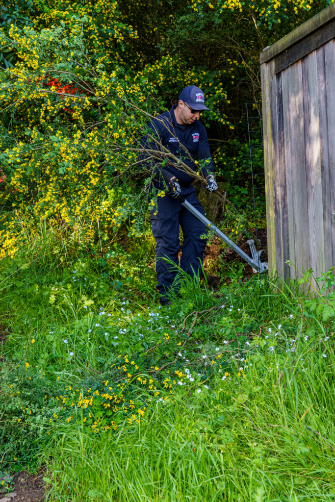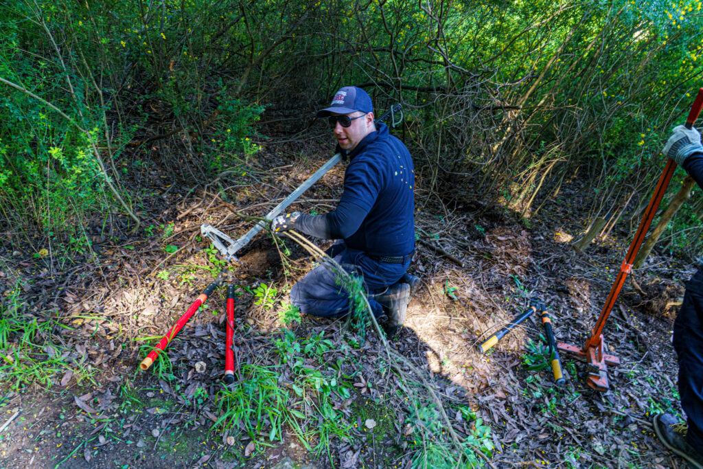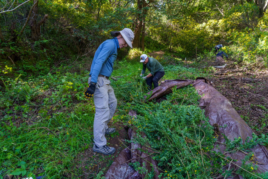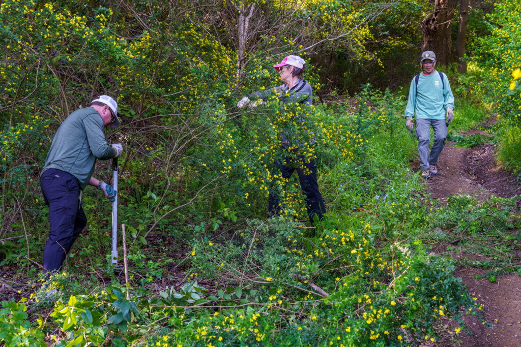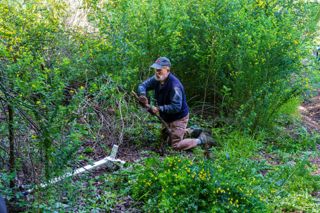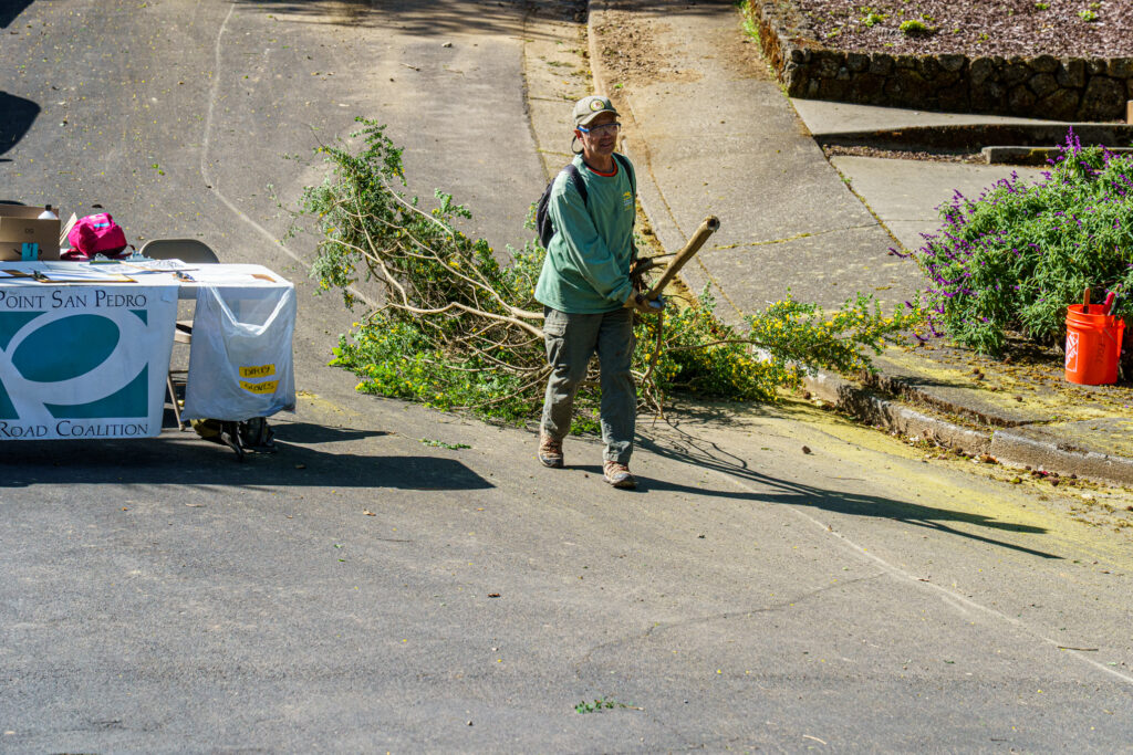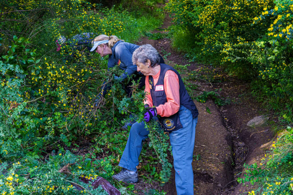 A big THANK YOU to everyone who participated in removing flammable vegetation for SPRC’s Earth Day Broom Pull in the Glenwood neighborhood! We especially appreciated the amazing support from the San Rafael Fire Department, Friends of China Camp, and Glenwood Neighbors. As you can see in the photos below, invasive broom was crowding the social trail and growing densely along the fence lines of the adjacent homes on Beechwood and Heartwood Drives.