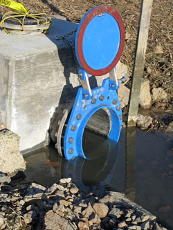 To maintain these wetlands, a pipe was placed under Beach Drive to connect the wetlands to the Bay water. A flap gate was included on the Bay end of this pipe to prevent a back flow into the wetlands during incoming tides.